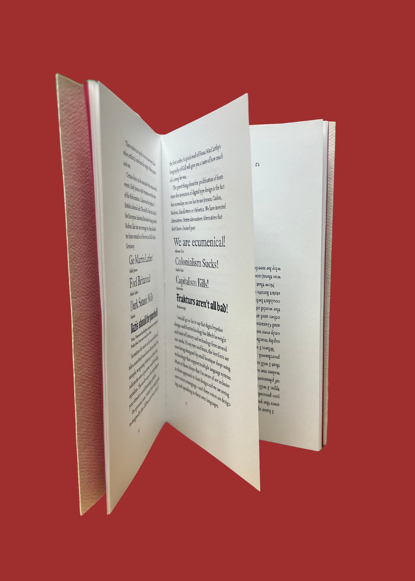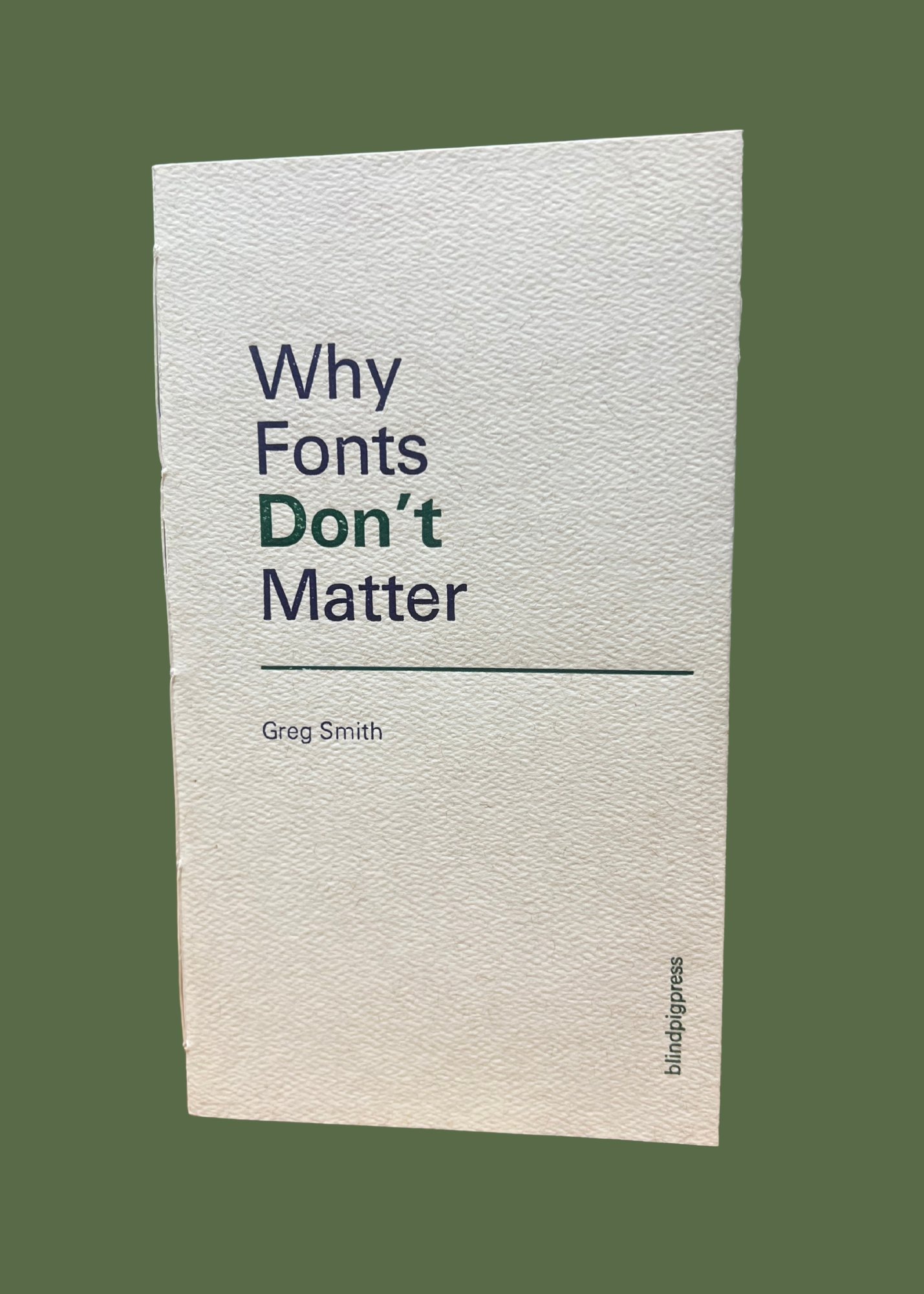 Why Fonts Matter/Don’t Matter is a chapbook examining the author’s ambivalence about fonts and their use in design and everyday life. The chapbook is about communication and how we as users of type can facilitate it. The layout draws from the classic Canadian “ Tête-bêche” bilingual flip format.